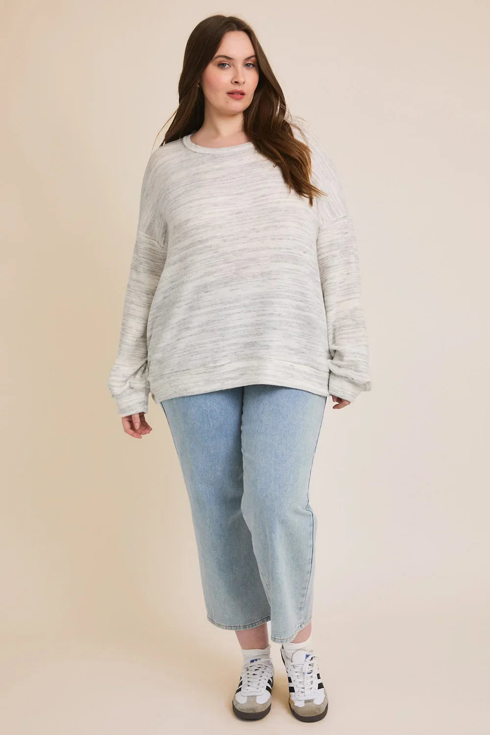 Plus Size Light Gray Heathered Soft Knit Long Sleeve Oversized Sweater Top
