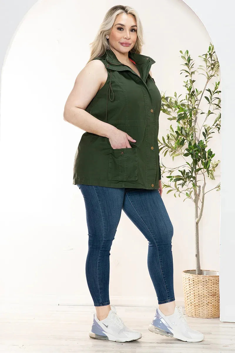 Stay stylish and ready for anything with our versatile Plus Size Hooded Military Utility Jacket Vest. This multifunctional piece features a sleeveless design perfect for layering, combining the sophistication of a utility jacket with the ease of a vest. Whether your customers style it for a casual weekend or a trendy streetwear look, this piece offers endless possibilities for your boutique’s fashion-forward clientele.