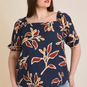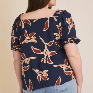 Plus Size Cotton Smocked Yoke Flutter Sleeve Casual Top