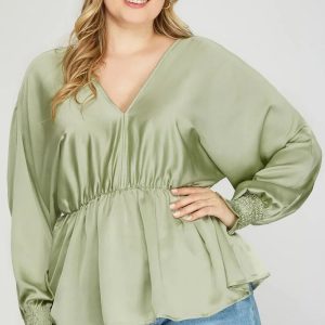 Elevate your boutique’s spring and summer collection with our Plus Size Light Sage Smocked Yoke Flutter Sleeve Top. This airy and versatile piece features a charming smocked yoke detail across the shoulders, flowy relaxed silhouette, and feminine flutter sleeves that create a beautiful drape. Crafted from soft, lightweight cotton, this top offers the perfect blend of comfort and effortless style for the fashion-forward woman.