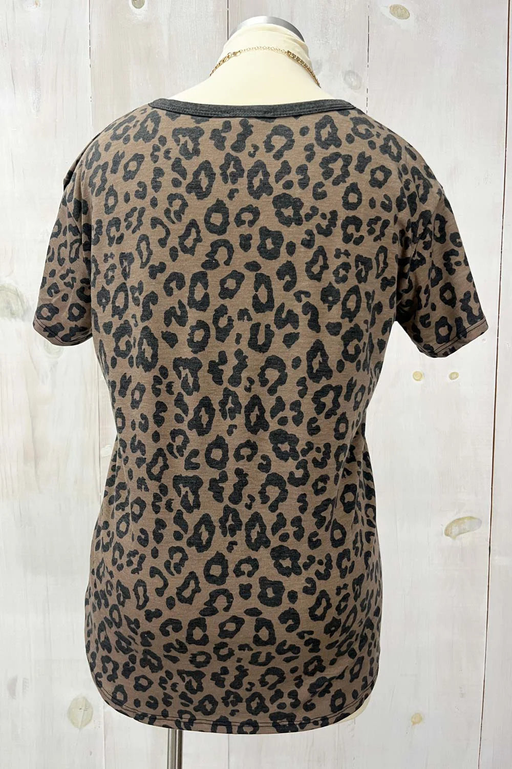 Plus Size Cheetah Print Button Front Relaxed Fit Short Sleeve Casual Top
