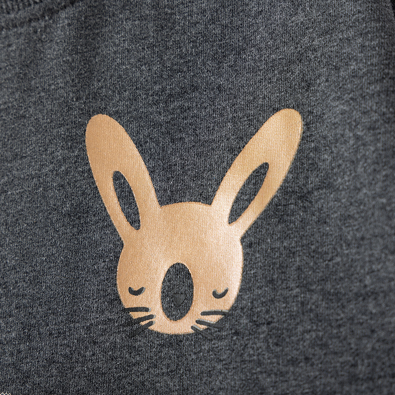 The upper part is made of thick, skin-friendly cotton-blend fabric that provides gentle warmth without feeling heavy. The cute bunny embroidery detail on the chest adds a playful and charming touch that kids love.