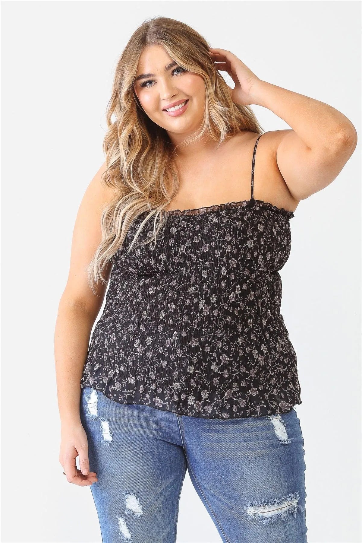 $40.00 – $48.00Price range: $40.00 through $48.00Plus Size Blush Floral Print Ruffle Trim Smocked Bodice Cami Top