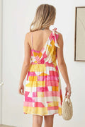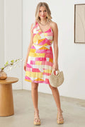 🖤 Item Features: abstract print, one side shoulder tie, one adjustable strap, warp bust, flowy hem, cute, vacation, chic, must have.
