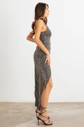 Sequin Spaghetti Strap High Slit Bodycon Gown