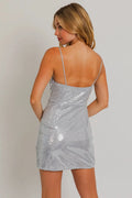 Shiny Silver Sequin Spaghetti Strap Party Dress