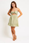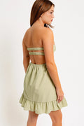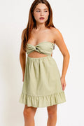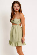 Embrace the bold and daring side of fashion with our Cut Out Strapless Twist Front Detail Mini Dress. This strapless dress features a unique twist front detail and strategically placed cutouts, creating a bold and eye-catching look. Perfect for a night out, this dress exudes confidence and adventure. Get ready to turn heads and make a statement!