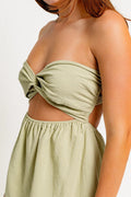 Women summer dress: sleeveless, strapless, cut out, tiered skirt hem, twisted bust open back, back elastic strap, boho, cute casual look, stylish, must have, perfect outfit for summer vacation!. The flowy A-line silhouette gracefully skims your figure, creating a playful and flattering shape. Ideal for a summer day or a night out, this dress is the perfect combination of chic and carefree style.