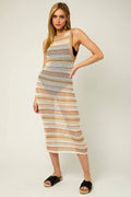 Multicolor Striped Spaghetti Strap Knit Midi Dress
