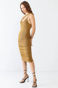 Women dress, solid color, ribbed, cut-out neck, ruched, midi length, semi-stretchy, lined, not see through, casual, cute, this dress is a versatile and stylish choice for the summer!