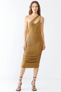 Golden One-Shoulder Satin Bodycon Dress