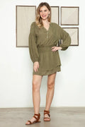Elevate your wardrobe with our Long Sleeve Embroidered Back Front Button Tiered Mini Dress, a perfect blend of elegance and comfort. This stunning dress features intricate embroidery that adds a touch of sophistication, while the tiered design creates a flattering silhouette. The front button closure allows for easy wear, making it ideal for both casual outings and special occasions. Crafted from high-quality materials, this mini dress ensures a comfortable fit, allowing you to move with ease. Make a statement and embrace your style with this versatile piece that pairs beautifully with your favorite accessories.